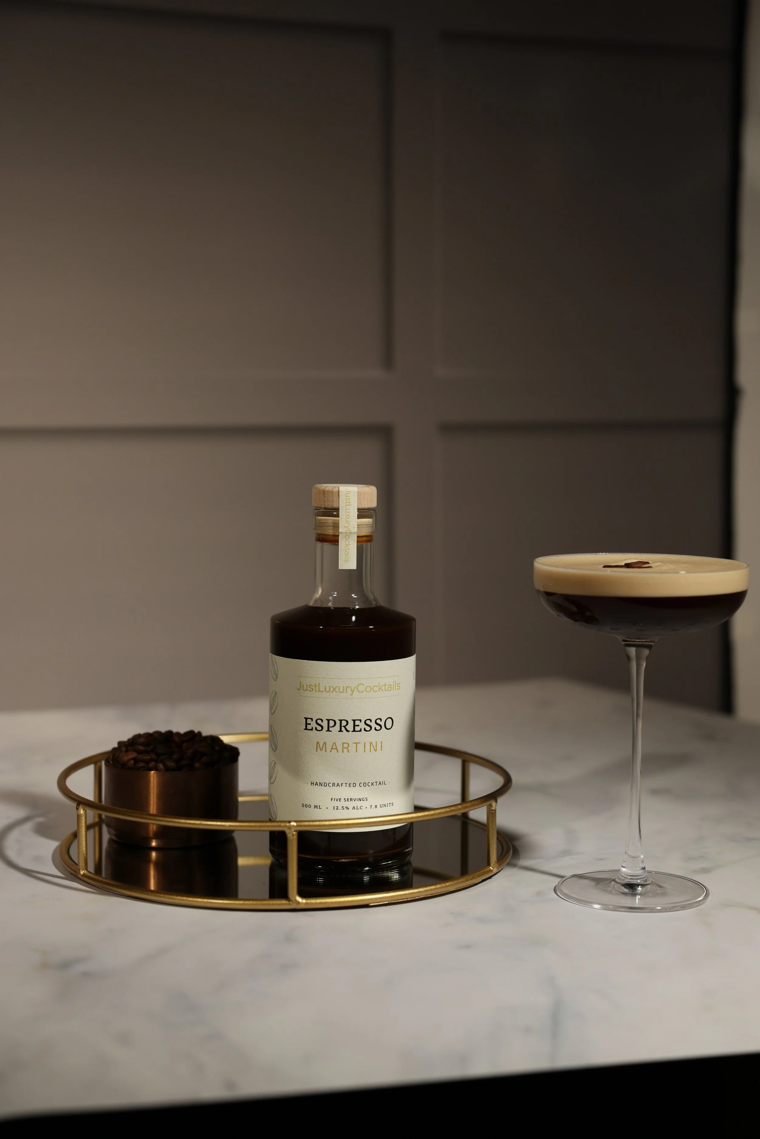Add 100ml to a cocktail shaker with cubed ice. Shake for 5 seconds, then strain into a Martini glass and garnish with 3 coffee beans.