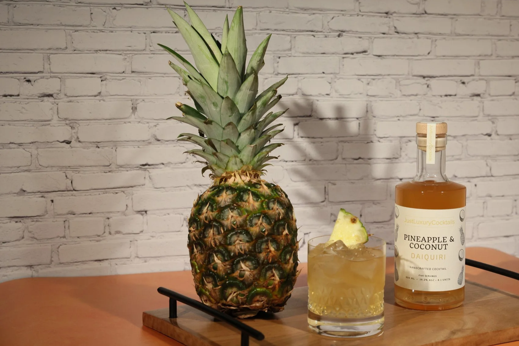 Add 100ml to a cocktail shaker with cubed ice and shake for 5 seconds. Add to a rocks glass with ice and garnish with a pineapple wedge.